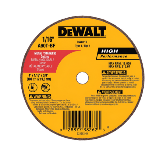 View full detailsMetal/Stainless 4" X 3/8" Disc Dewalt